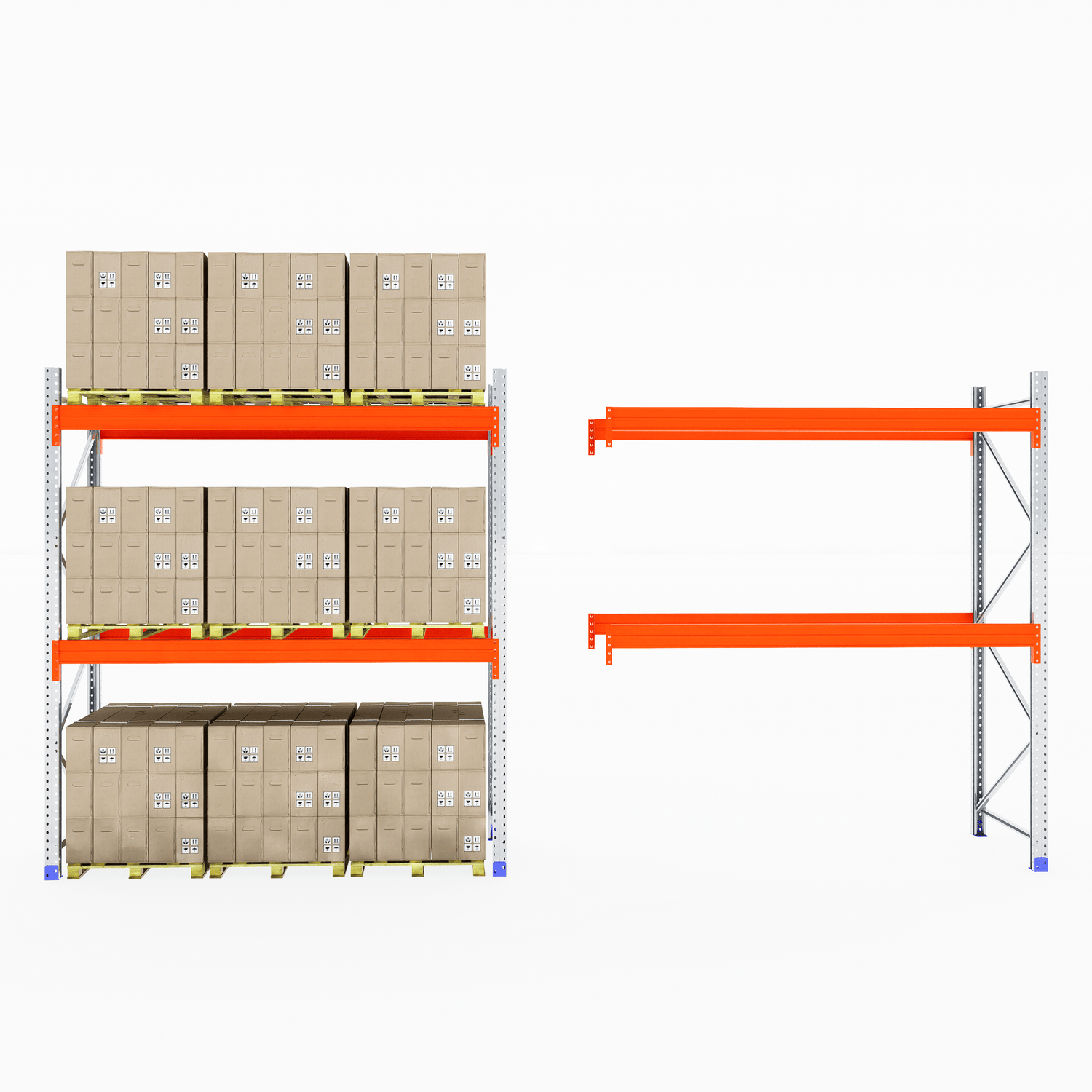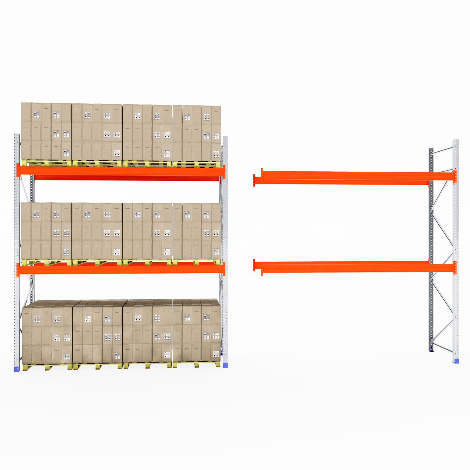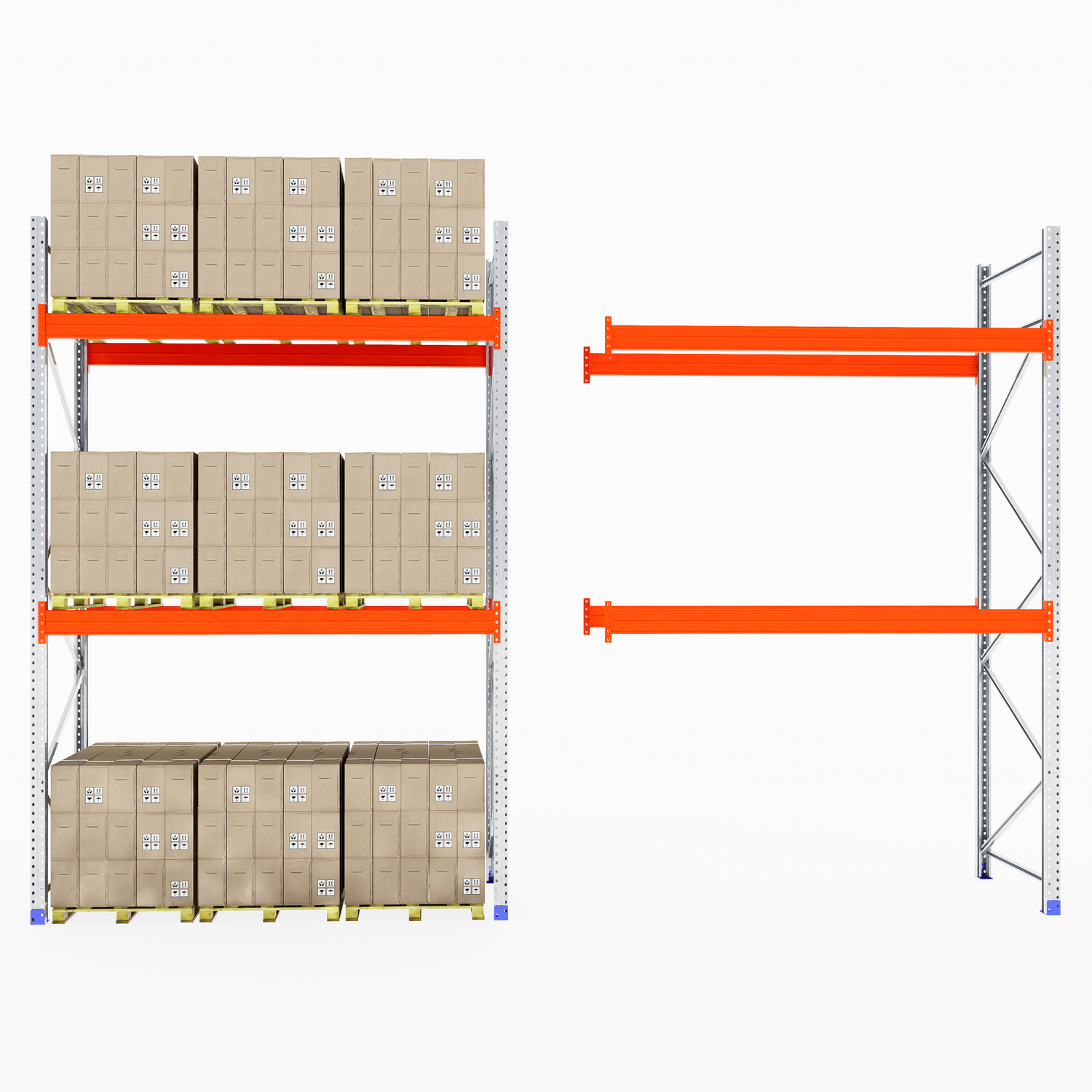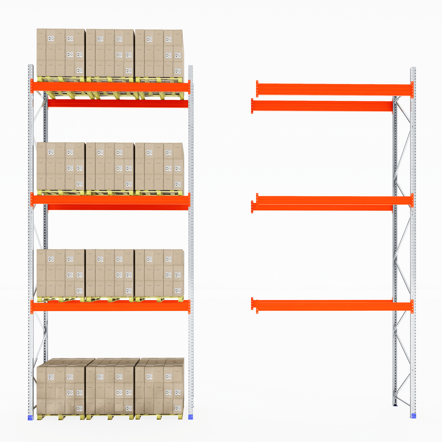 The boltless design allows for fast and straightforward assembly—no screws or special tools required. Once installed, the system provides clear aisle access for smooth loading and unloading, making it ideal for busy warehouse and industrial environments.