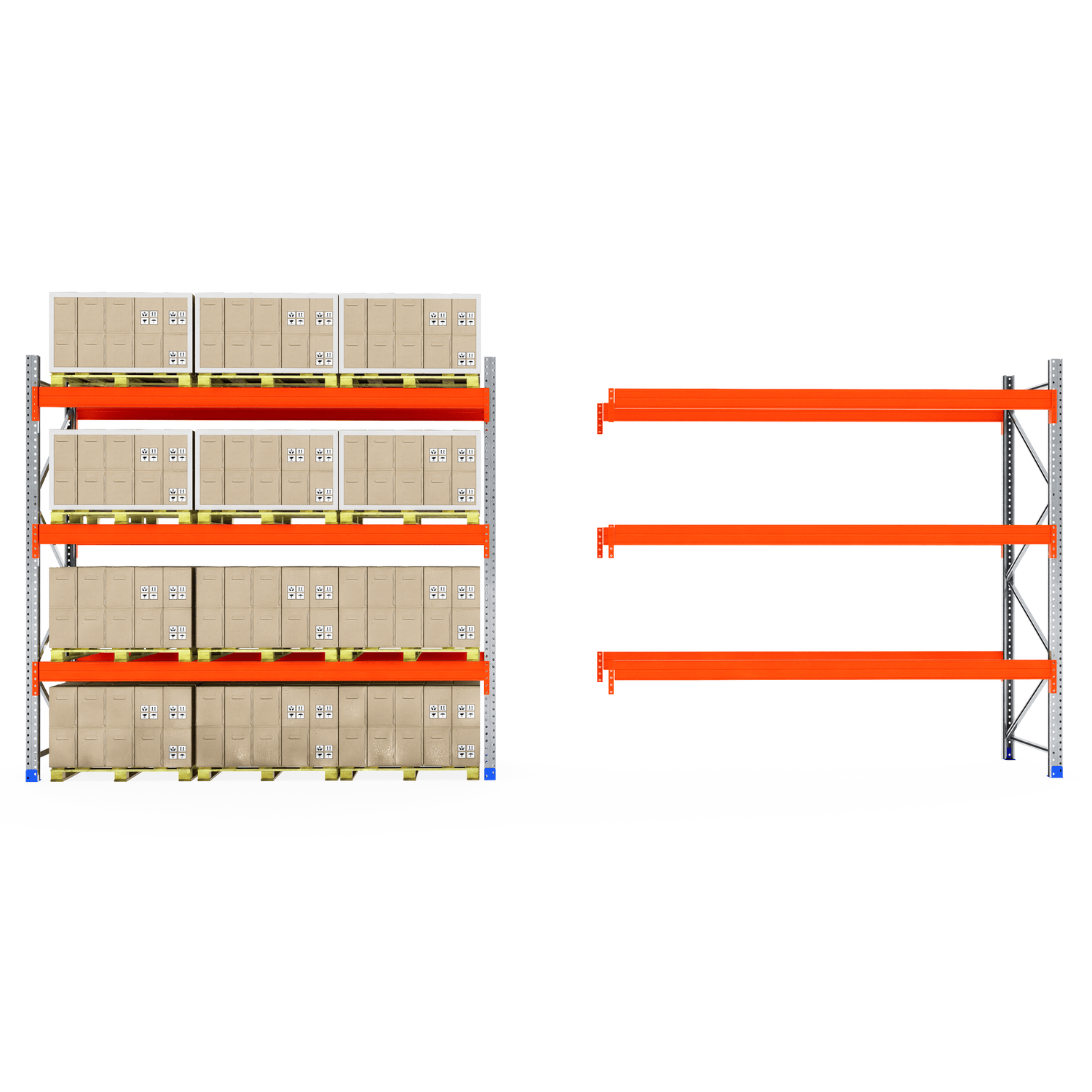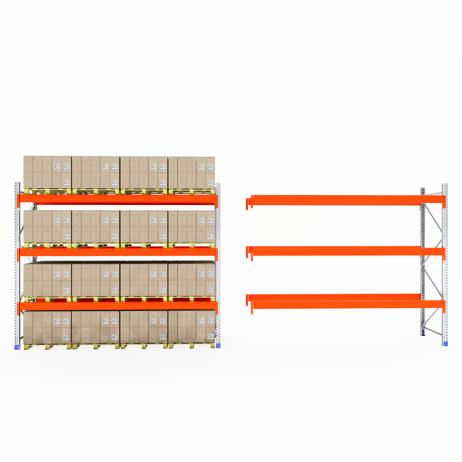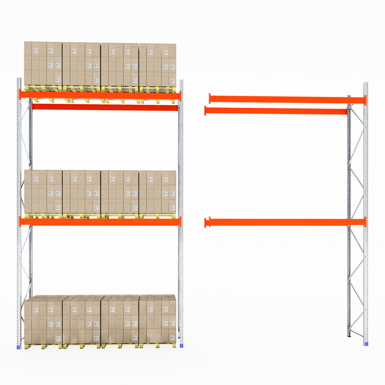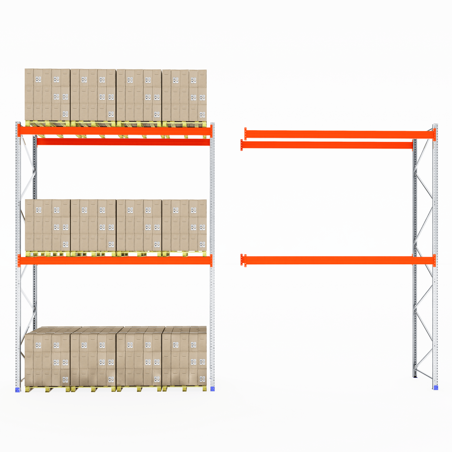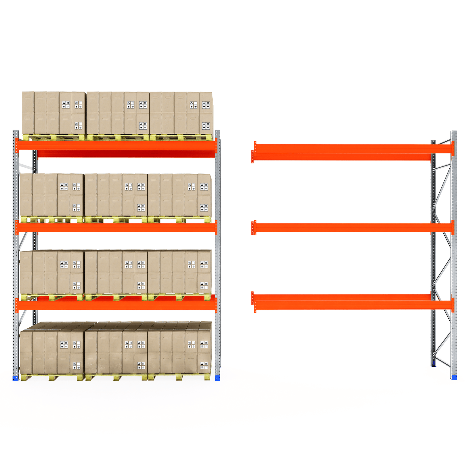 The boltless design allows for fast and straightforward assembly—no screws or special tools required. Once installed, the system provides clear aisle access for smooth loading and unloading, making it ideal for busy warehouse and industrial environments.