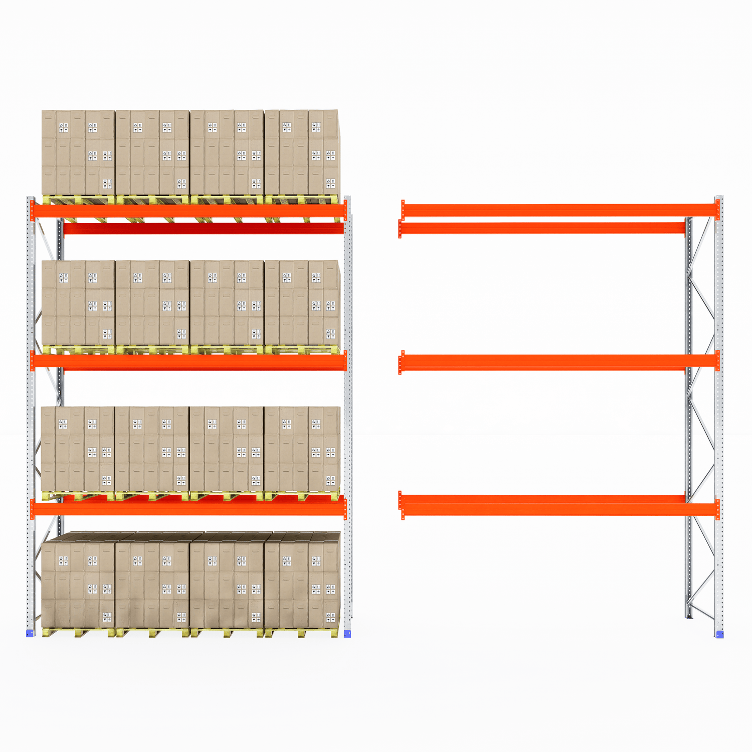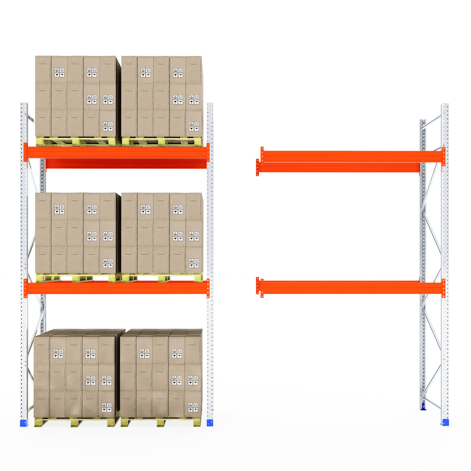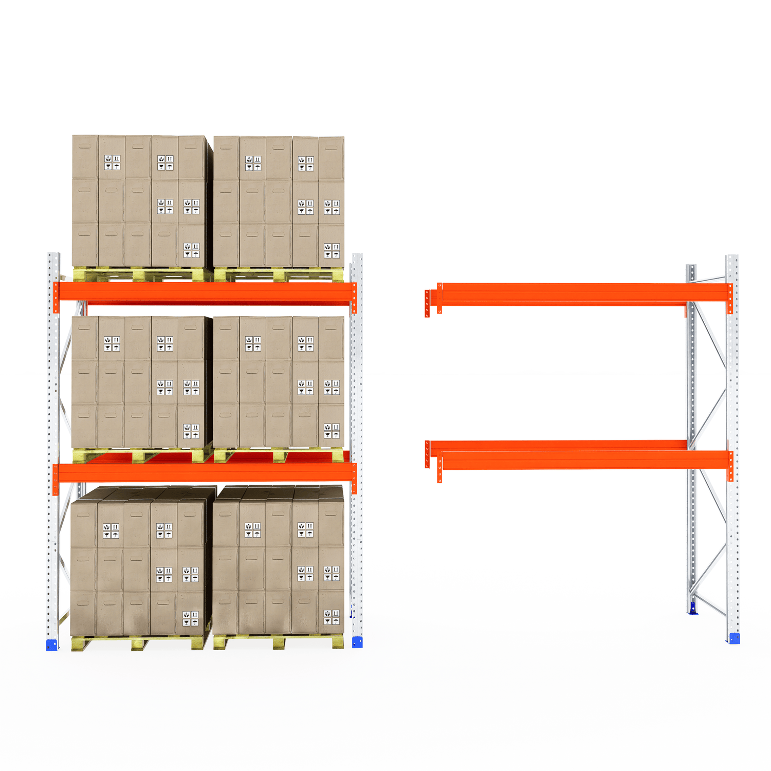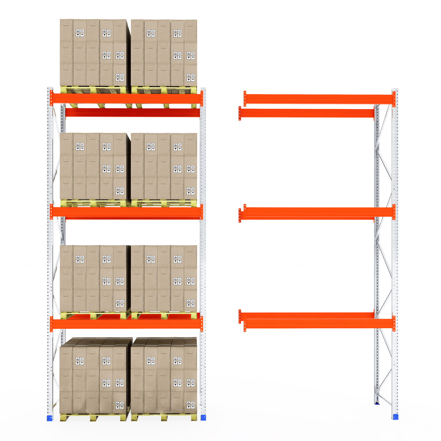 The boltless design allows for fast and straightforward assembly—no screws or special tools required. Once installed, the system provides clear aisle access for smooth loading and unloading, making it ideal for busy warehouse and industrial environments.