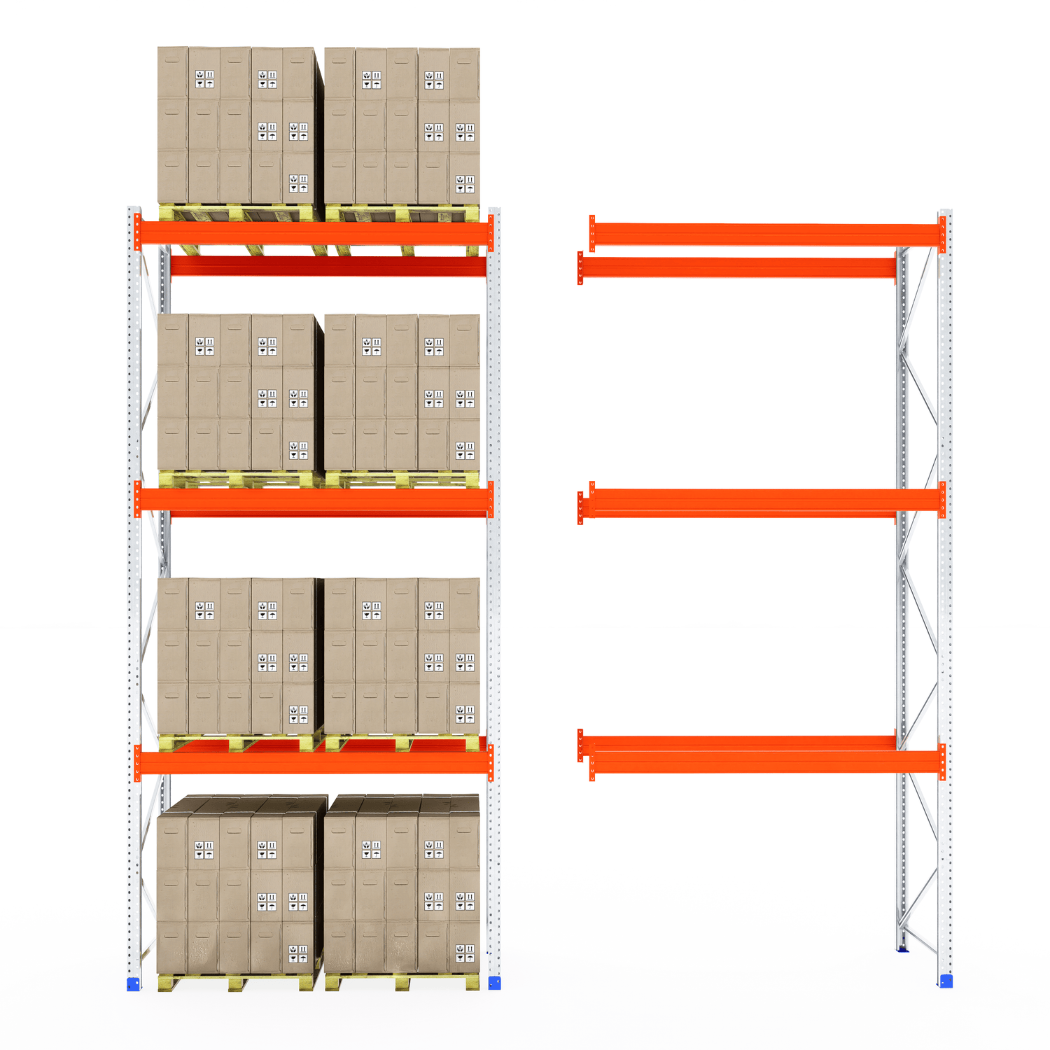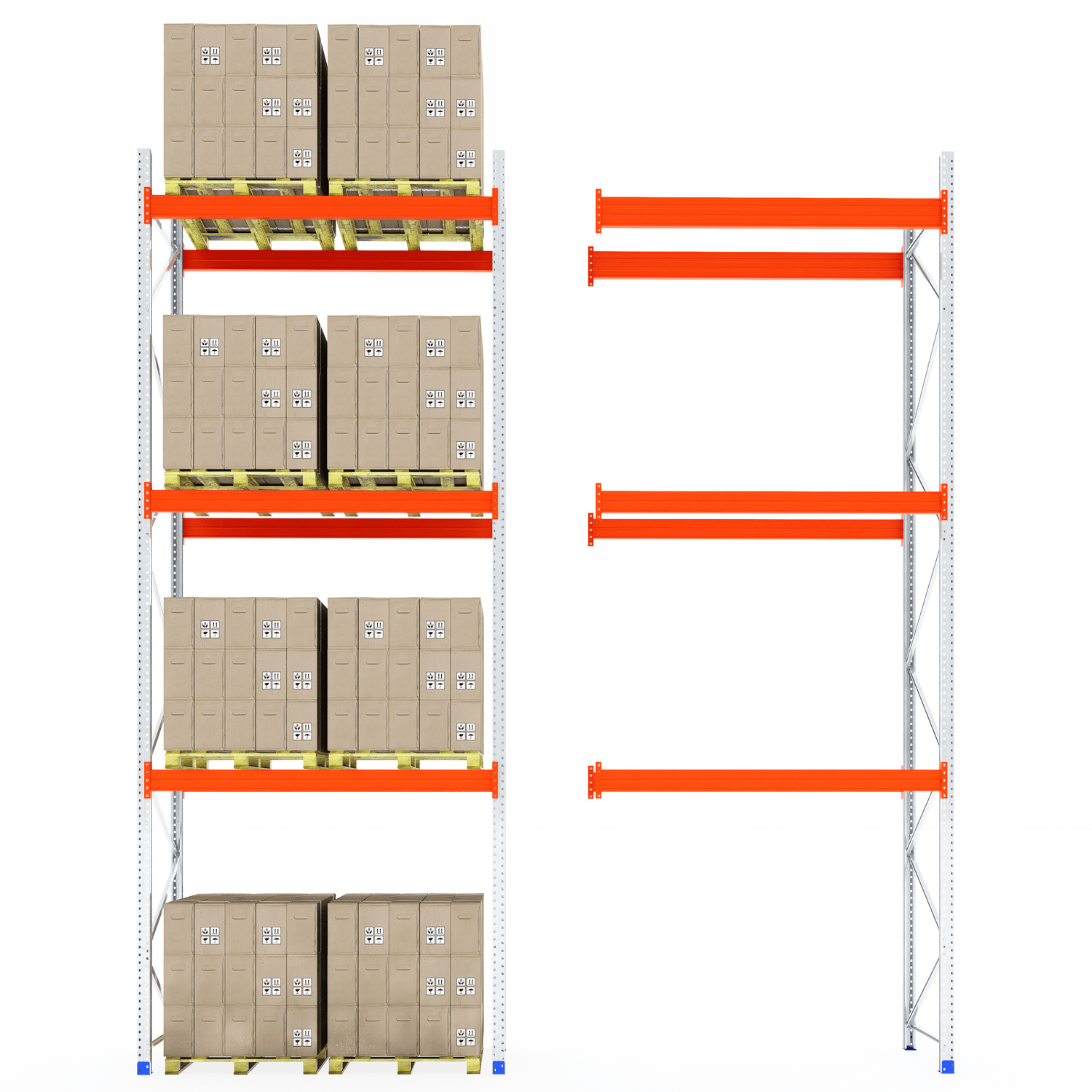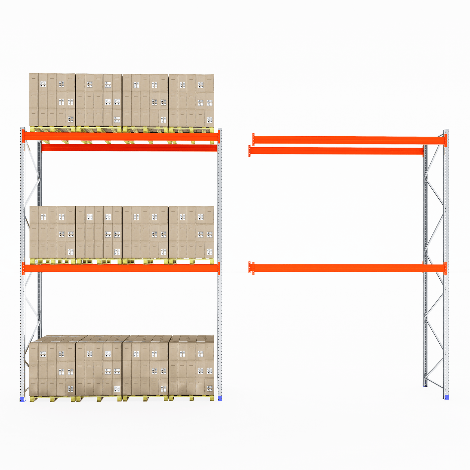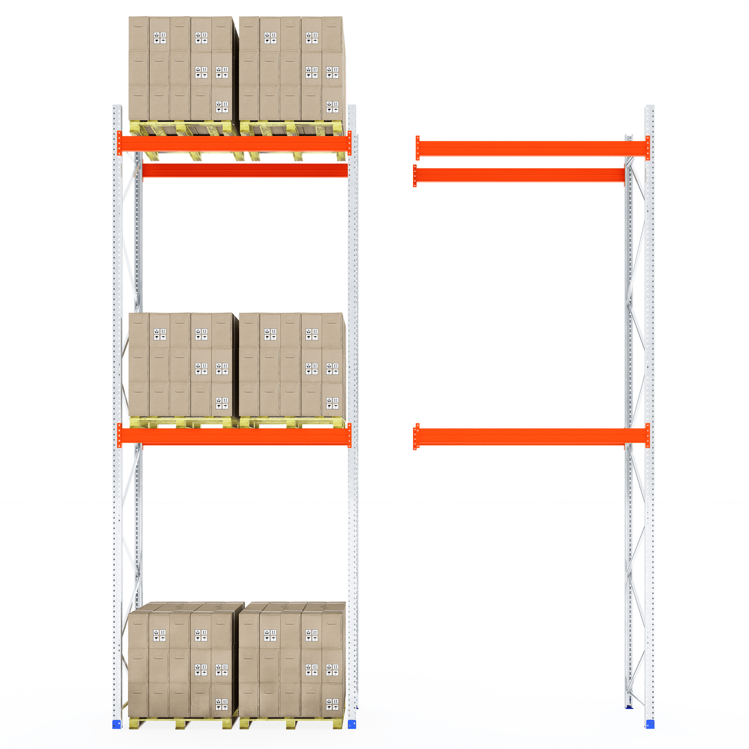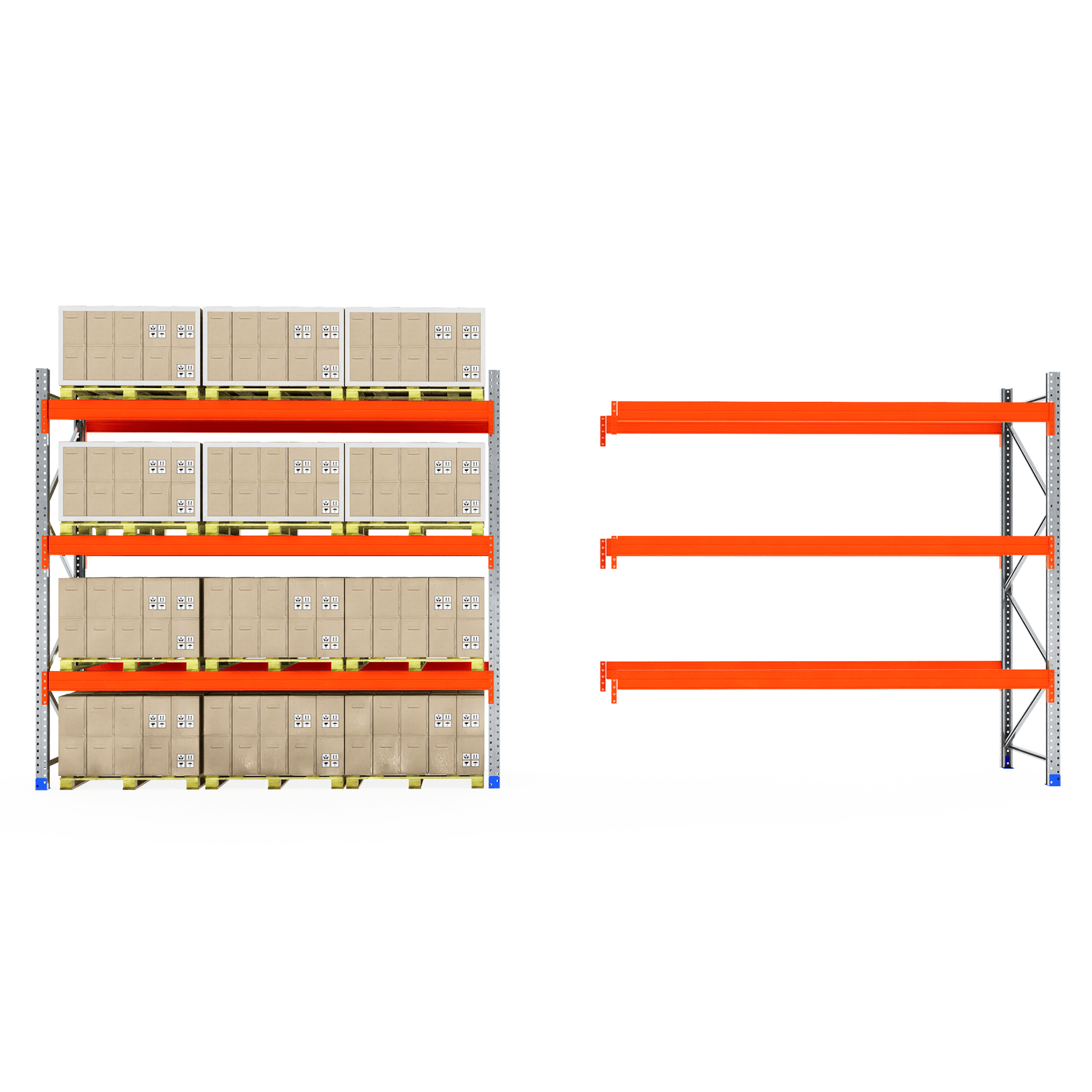 The boltless design allows for fast and straightforward assembly—no screws or special tools required. Once installed, the system provides clear aisle access for smooth loading and unloading, making it ideal for busy warehouse and industrial environments.